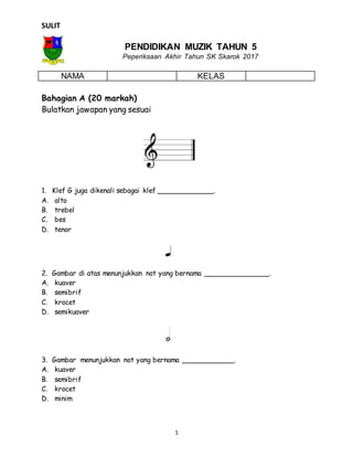 Contoh Soalan Peperiksaan Muzik Tahun 5